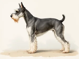Friendly, smart, and obedient. A robust small dog with a distinctive beard and wiry coat.